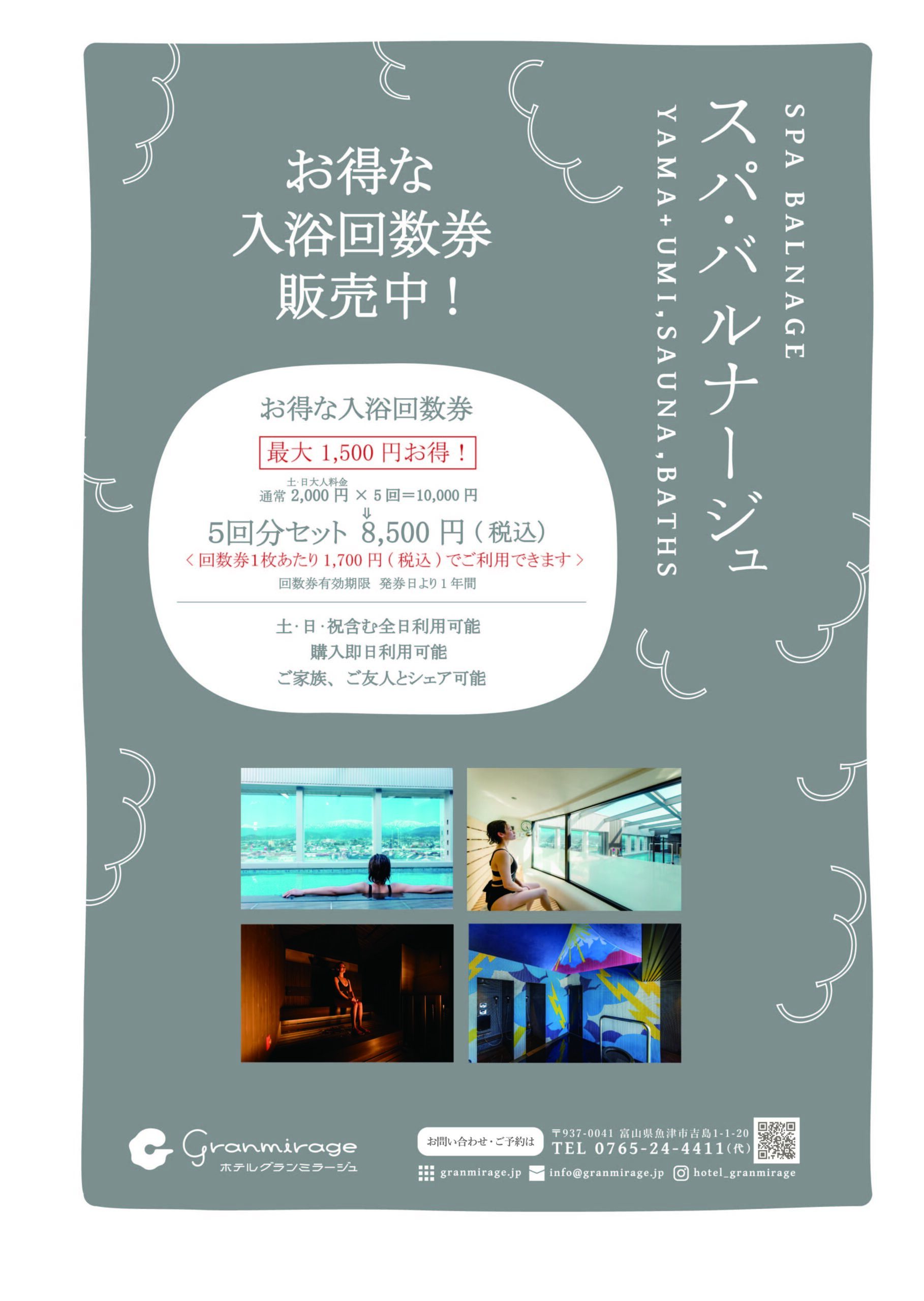 入浴1回あたり 1,700円、シェアも可能なお得な回数券