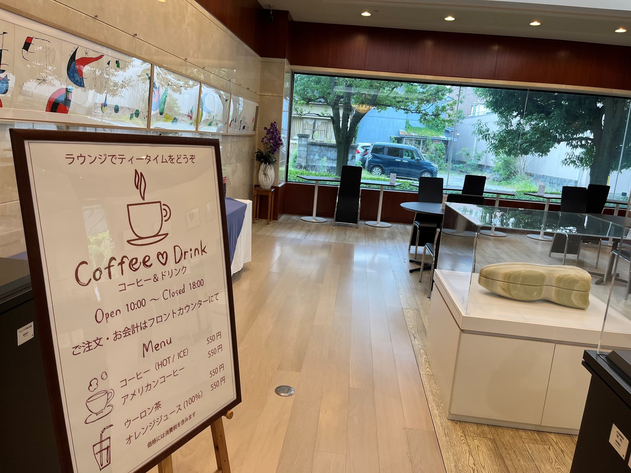 1Fロビーラウンジでは、コーヒーやソフトドリンクをご提供しております。 さまざまなアートに囲まれた特別な空間でティータイムはいかがですか。 待ち合わせや打合せなどお気軽にご利用ください。